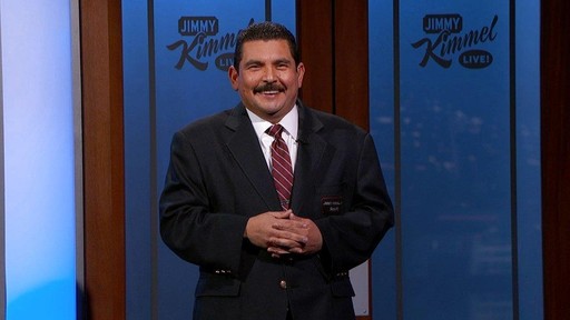 Jimmy's security guard Guillermo injured himself in a soccer accident during the holiday break, but he’s a very brave individual. He can now walk and work thanks to physical therapy, but he can't run or jump. Now he’s taking his story wide to help inspire others who might be in a similar predicament. From the January 5, 2015 episode of Jimmy Kimmel Live.