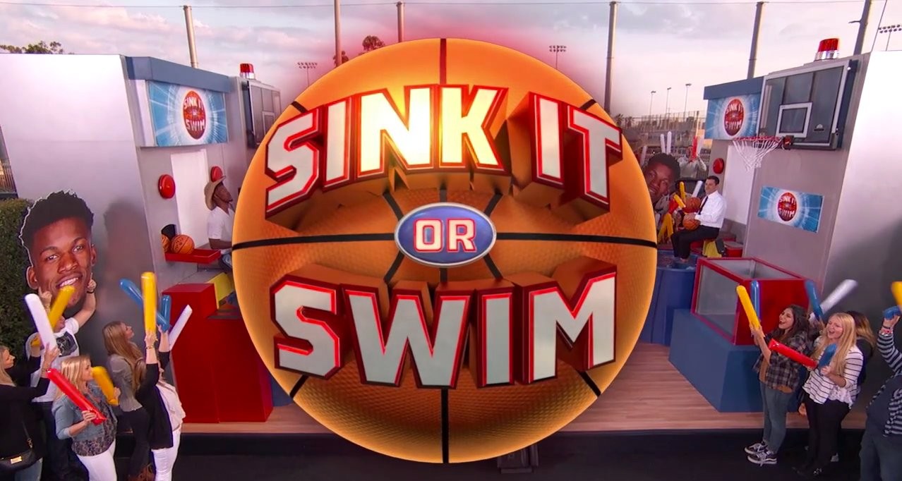Jimmy Kimmel debuted the Sink It or Swim game on Jimmy Kimmel Live: Game Night. Jimmy challenged Chicago Bulls' Jimmy Butler in the very first Sink It or Swim faceoff. The object of the game is to get the opposing person into the tank by shooting a basketball into the hoop. The loser is dunked into a very cold water tank. Check out which Jimmy loses.