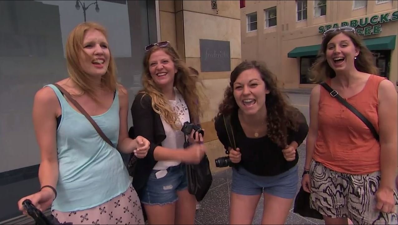 The final group of tourists tries to get out of paying by pretending they speak only German, but they totally get owned by the Kimmel cameraman who's fluent: