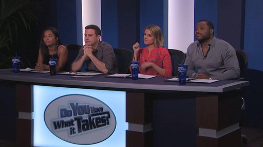Episode 1 of "Do You Have What It Takes?" featuring judges Rozonda "Chilli" Thomas, Malcolm-Jamal Warner, Ali Fedotowsky, Jimmy Kimmel and host Kenny Mayne: