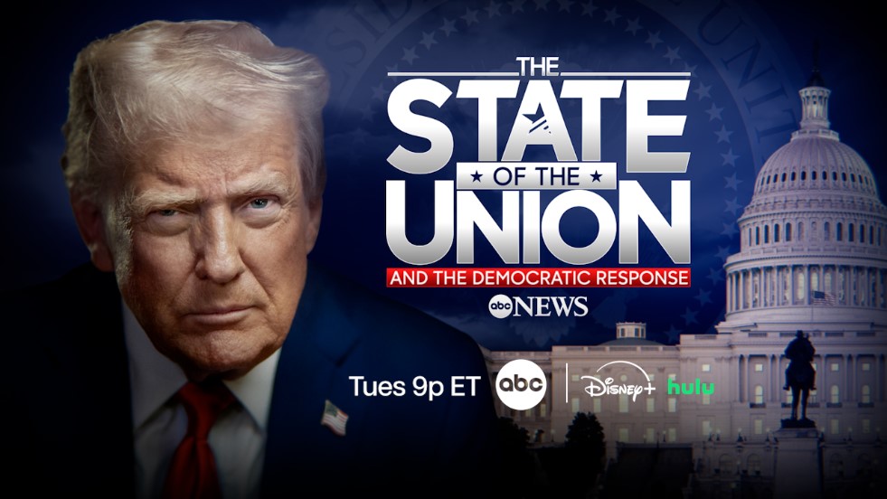 ABC News announced special coverage of the 2026 State of the Union address by President Donald Trump and the Democratic response from Virginia Governor Abigail Spanberger, airing Tuesday, Feb. 24 (9:00-11:00 p.m. EST), on ABC and streaming on Disney+, Hulu, and ABC News Live. "World News Tonight" anchor and managing editor David Muir will lead coverage from Washington, D.C., featuring ABC News' powerhouse political team, including "World News Tonight" Sunday and ABC News Live "Prime" anchor Linsey Davis, chief White House correspondent Mary Bruce, "This Week" co-anchor and chief global affairs correspondent Martha Raddatz, "This Week" co-anchor and chief Washington correspondent Jonathan Karl, chief justice correspondent Pierre Thomas, senior political correspondent Rachel Scott and correspondent Jay O'Brien. Contributors Donna Brazile and Chris Christie along with former Speaker of the House Kevin McCarthy will provide analysis across platforms.