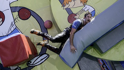Wipeout is hosted by John Anderson (ESPN’s SportsCenter), John Henson (E!’s Talk Soup) and co-hosted by Jill Wagner (MTV’s Teen Wolf).